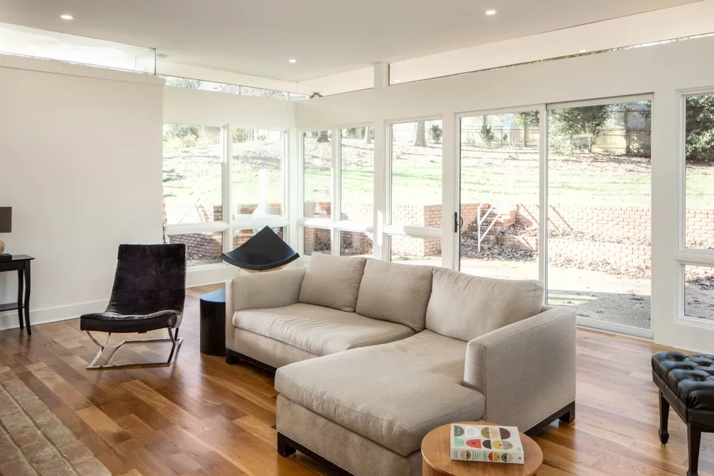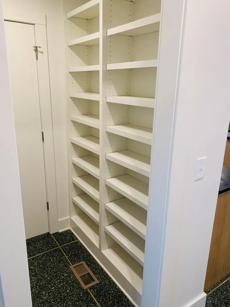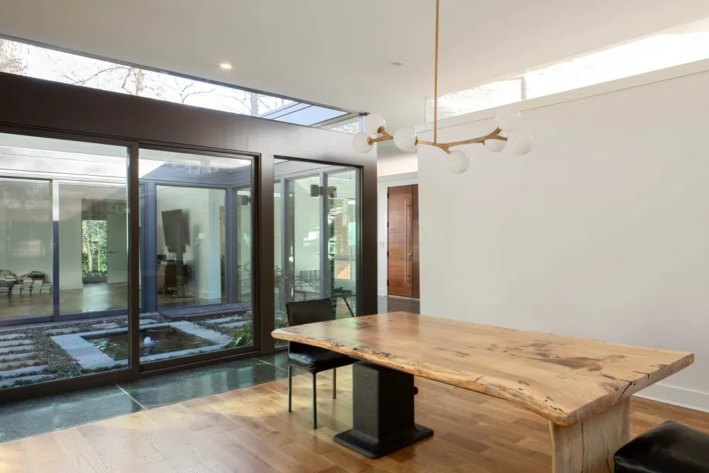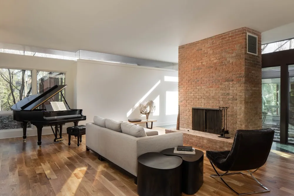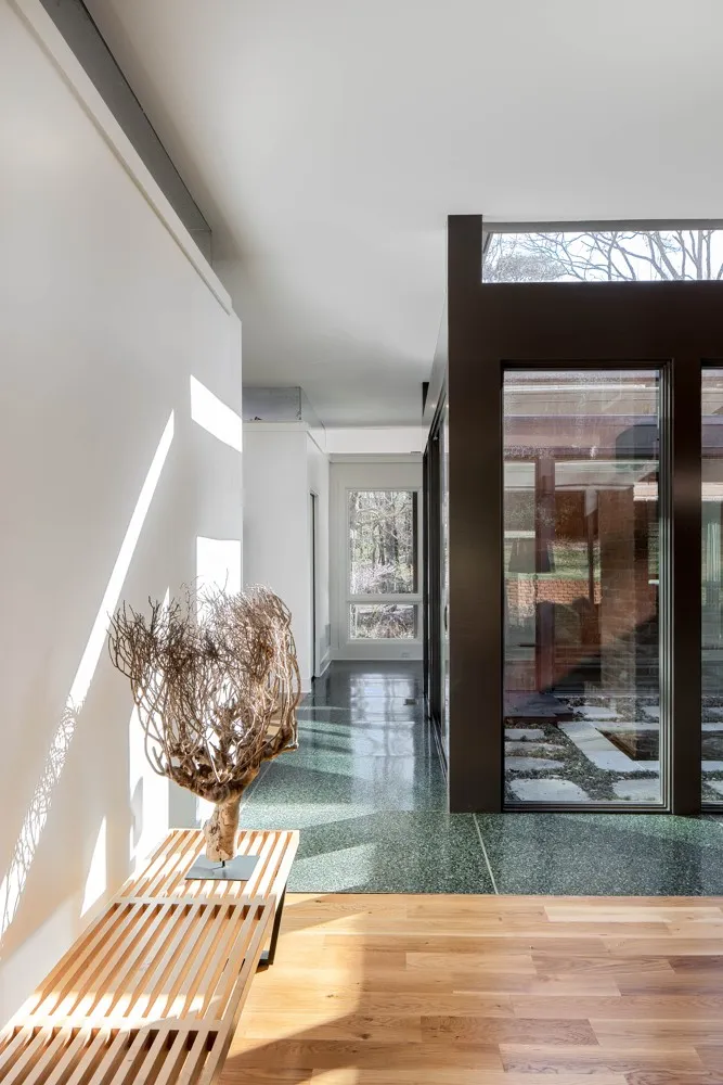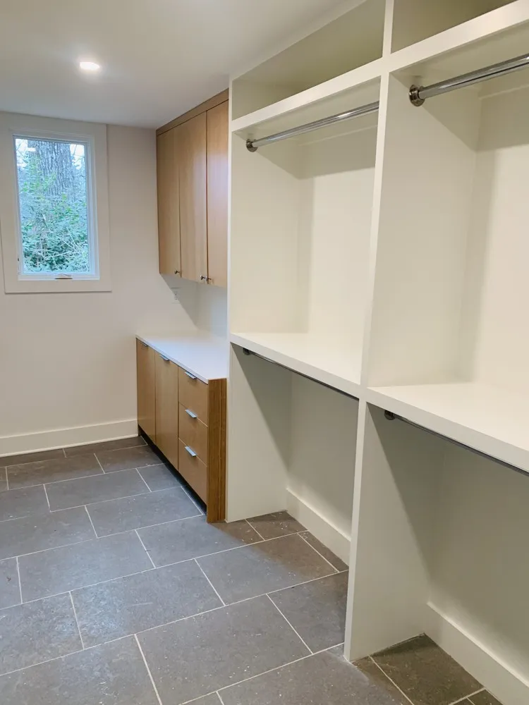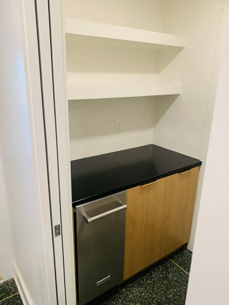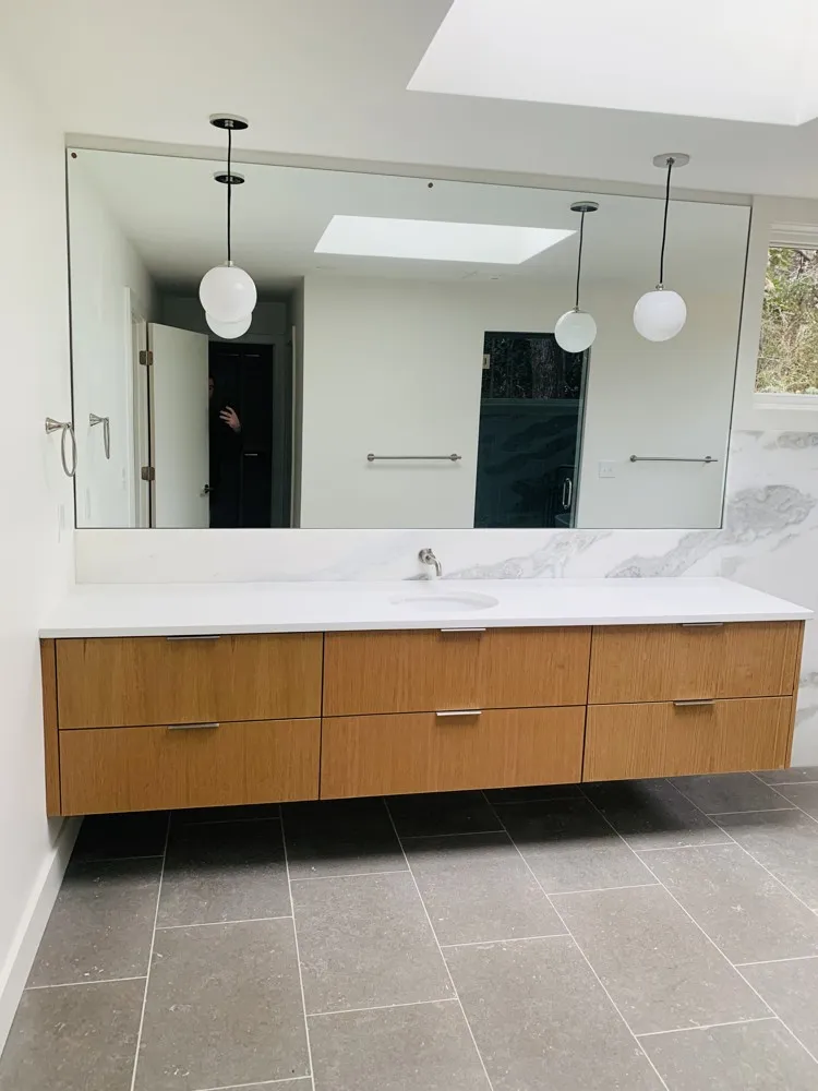 This unique, mid-century modern home, was completely remodeled by SouthFace. From adding on to the home to provide a large master bathroom and closet, to re-paving the driveway, this home was revitalized in every way. The subfloor in this home was replaced. Terrazzo and hardwood floors were installed throughout the home. The new master bathroom was completed with a steam shower which includes a rain head, a freestanding bathtub that is surrounded by a marble slab, a custom floating vanity with a matching marble countertop, and all new tile. Custom shelving was installed throughout the home including the master closet which was completed with a washer and drier hooked up, and custom cabinetry. All of the trim and doors in the home were replaced. The kitchen was completely renovated with new custom cabinetry, countertops, and appliances. A new shop was built by SouthFace. The asphalt driveway was repaved and the roof was replaced.