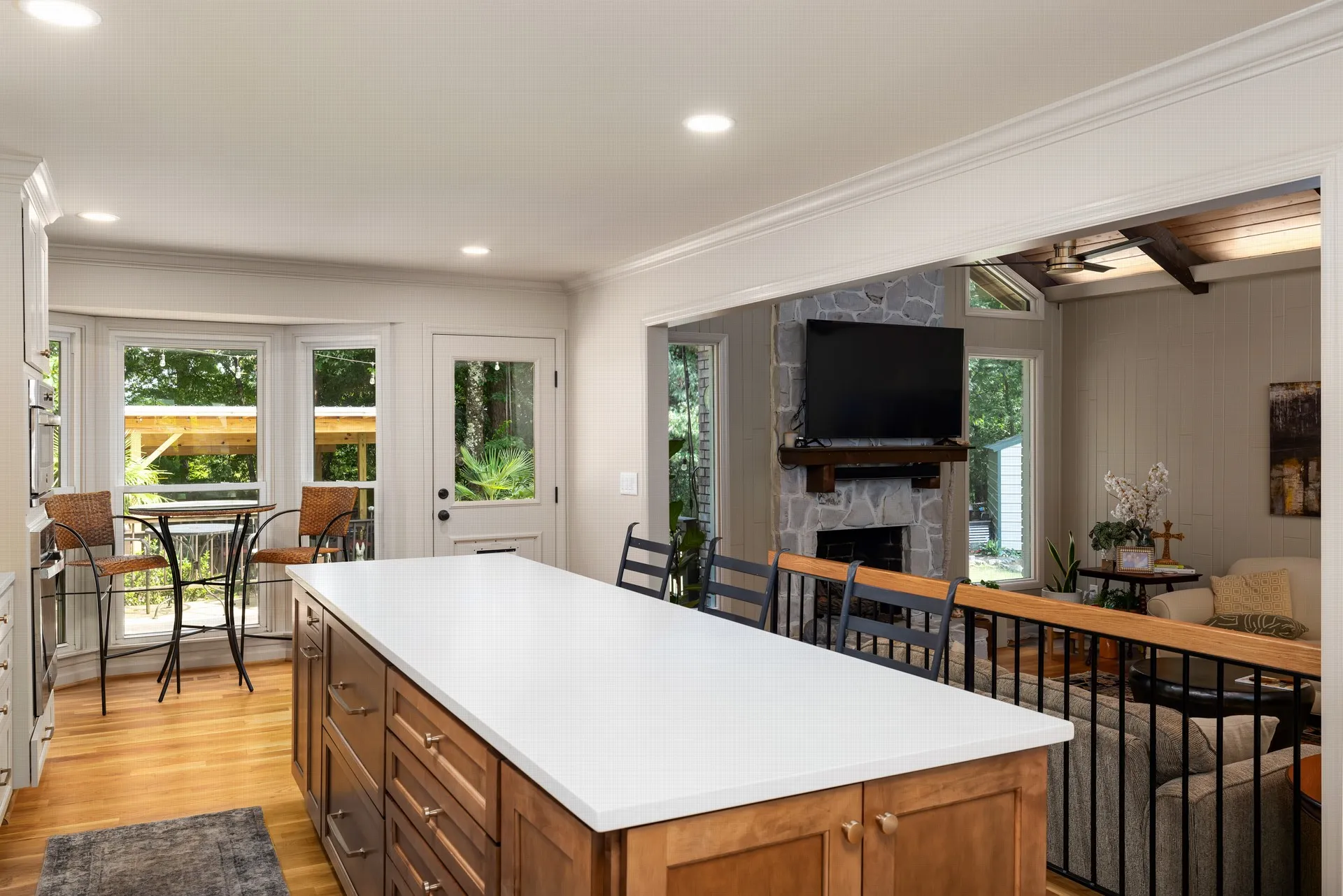 We remodeled this classic kitchen in Vestavia Hills, AL by expanding the space and enhancing its functionality. We installed elegant granite countertops and stylish cabinets, complemented by modern appliances. This renovation seamlessly blends Southern charm with modern convenience, making it a perfect update for any Vestavia Hills home.