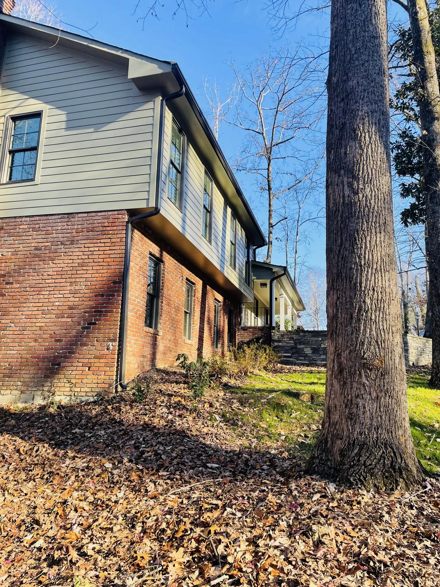 The home's exterior has been thoughtfully redesigned, maintaining the integrity of its original architecture. The new roofing and fresh siding blend seamlessly with the existing brickwork, creating a timeless facade that welcomes residents and guests alike.