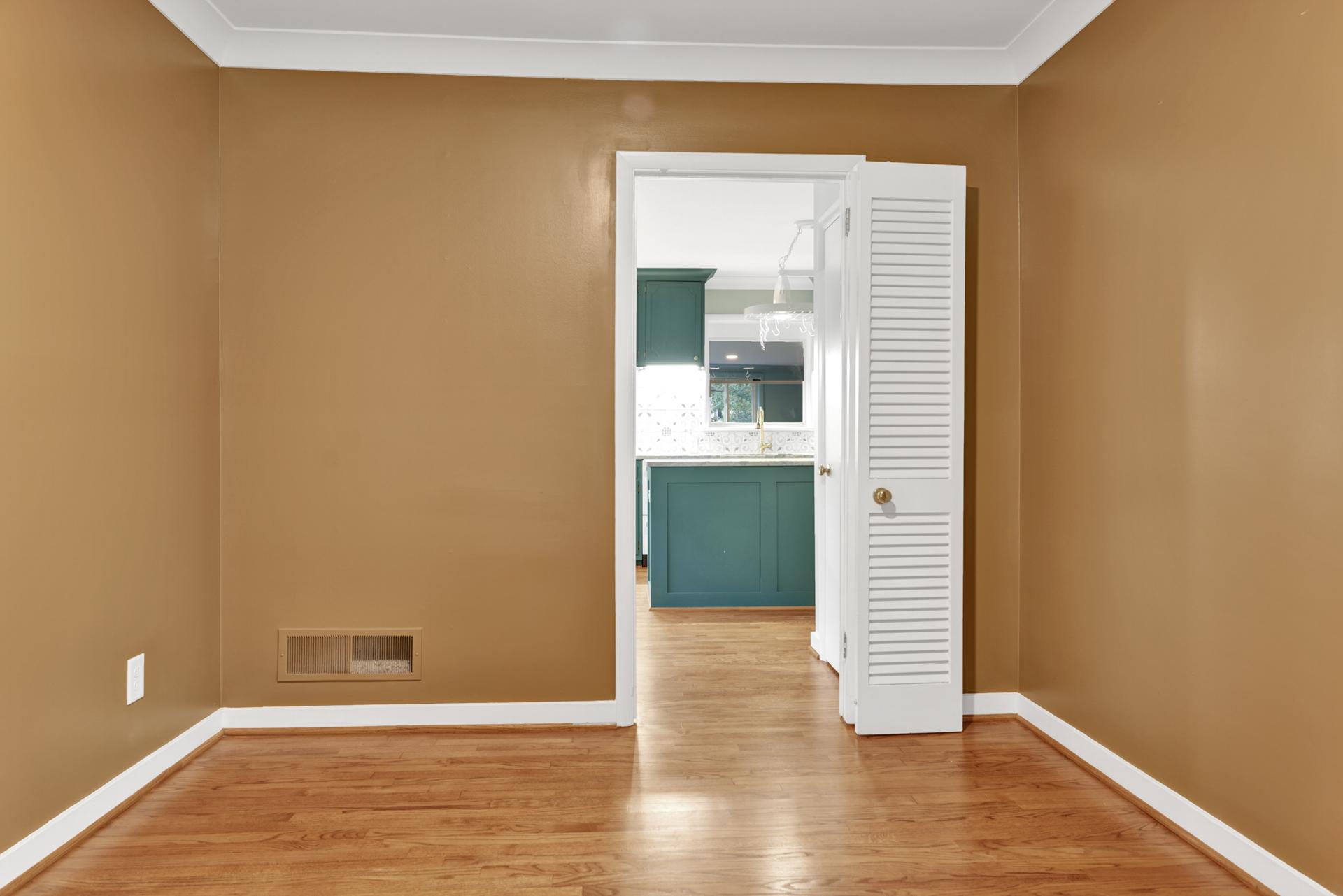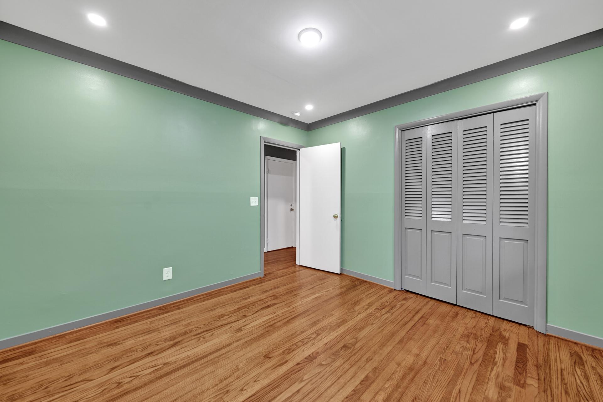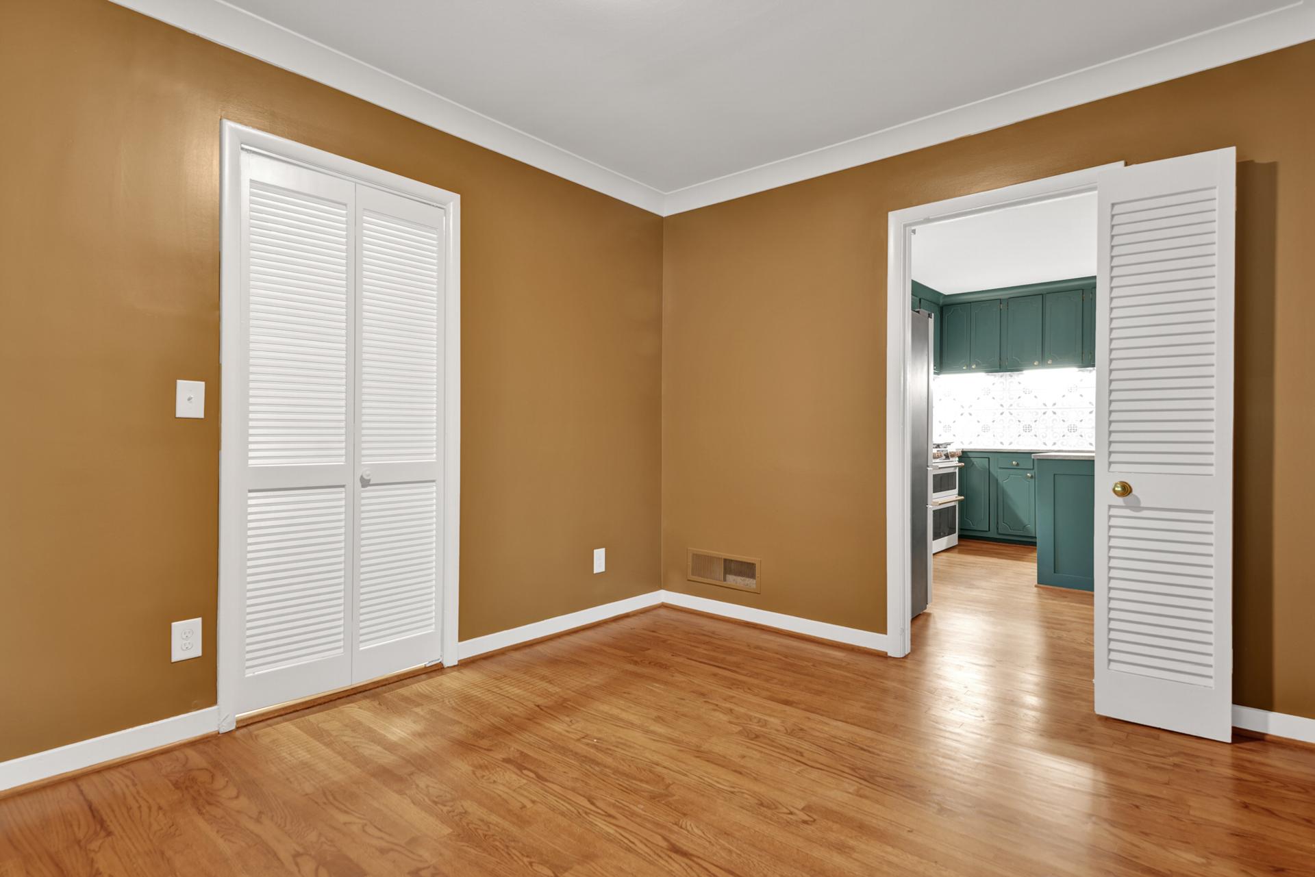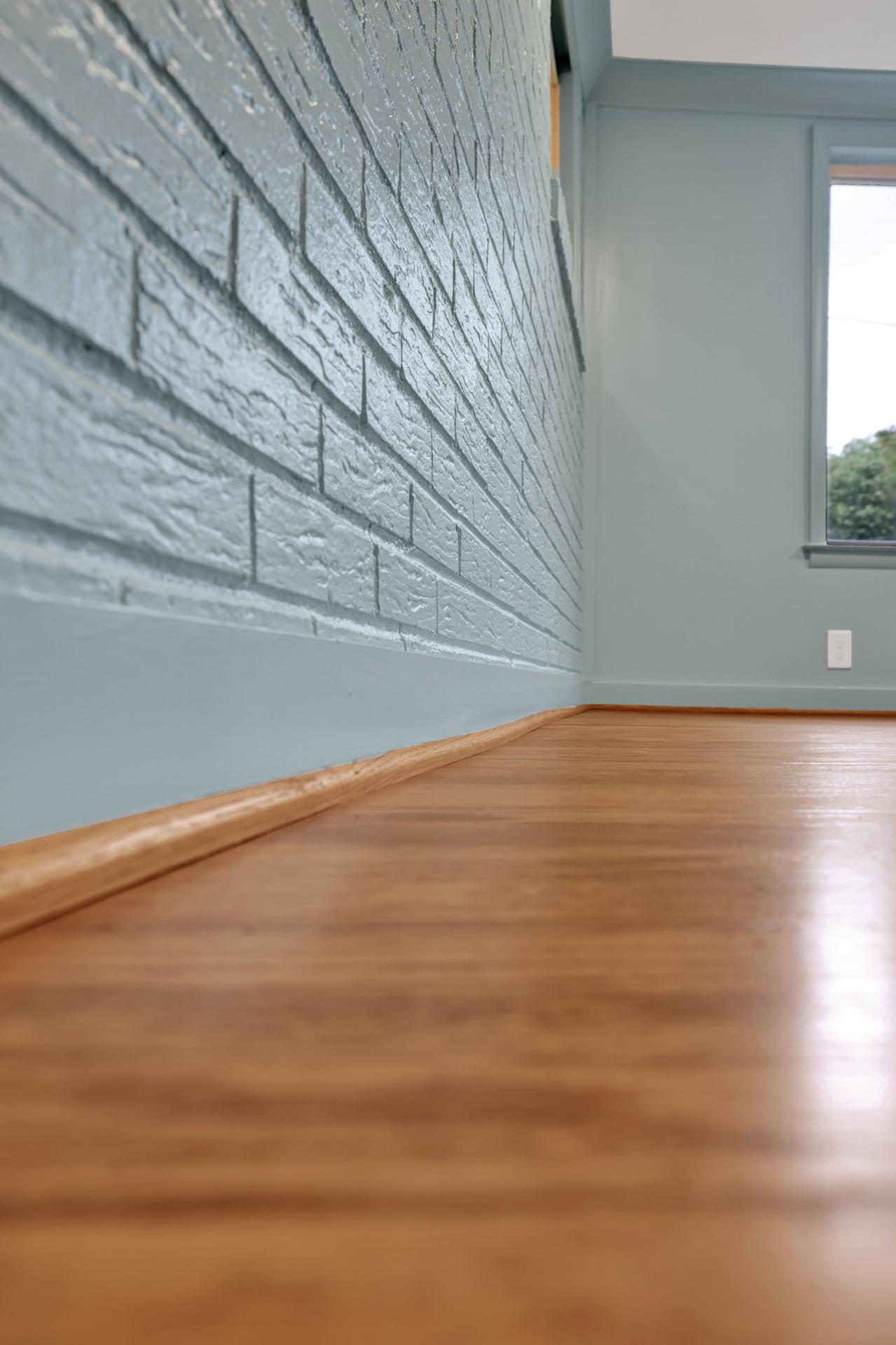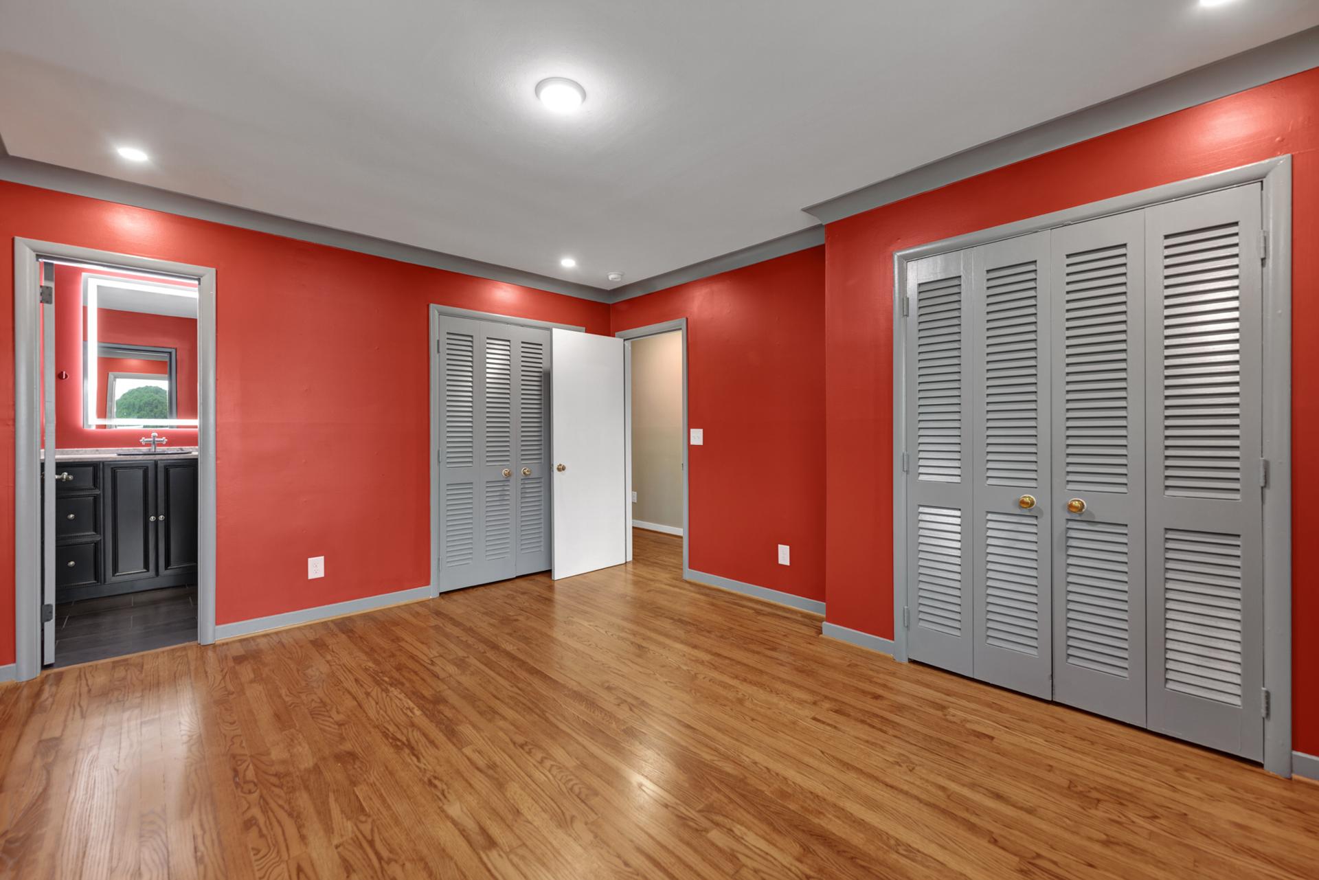 The kitchen received a new island and refinished cabinets, while both bathrooms were remodeled — expanding the master shower into a previous closet. We replaced old flooring with new hardwood, refinished existing planks, and repainted the entire interior for a cohesive look.