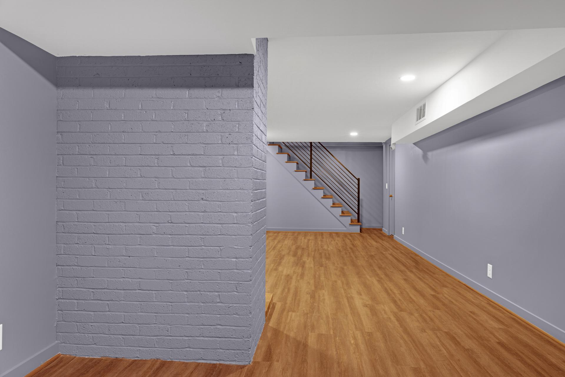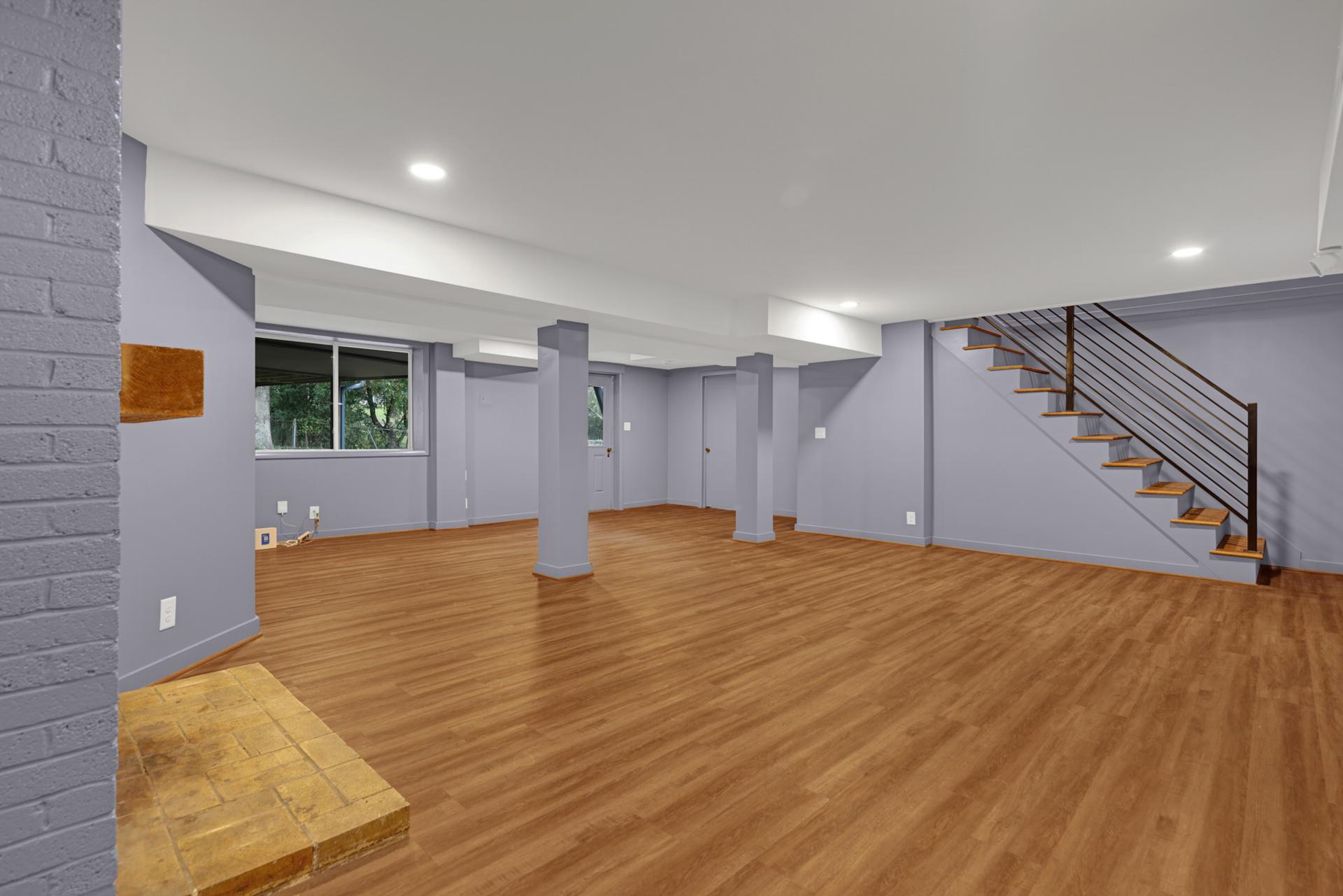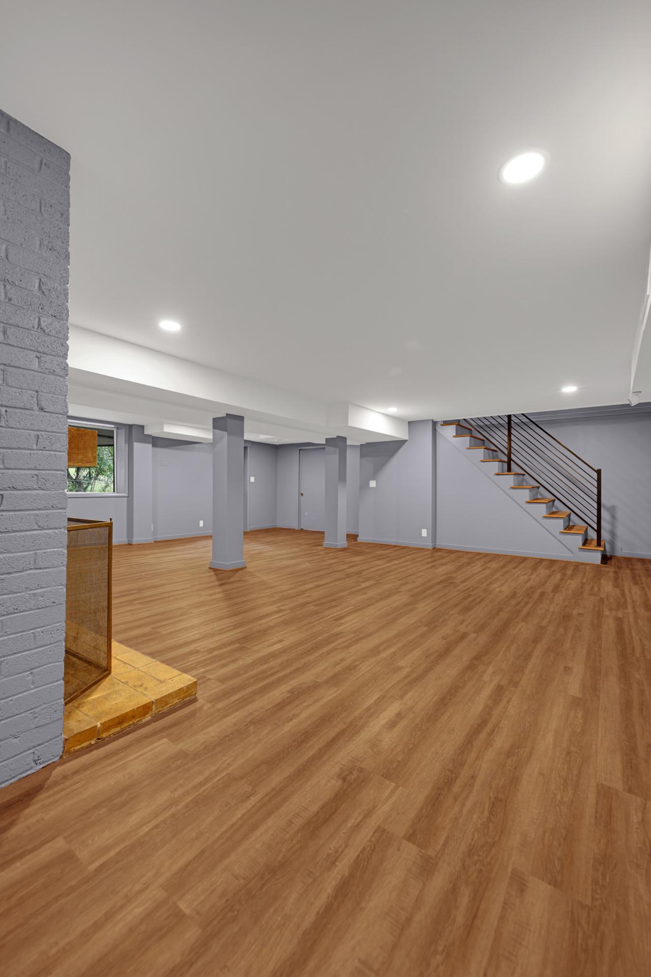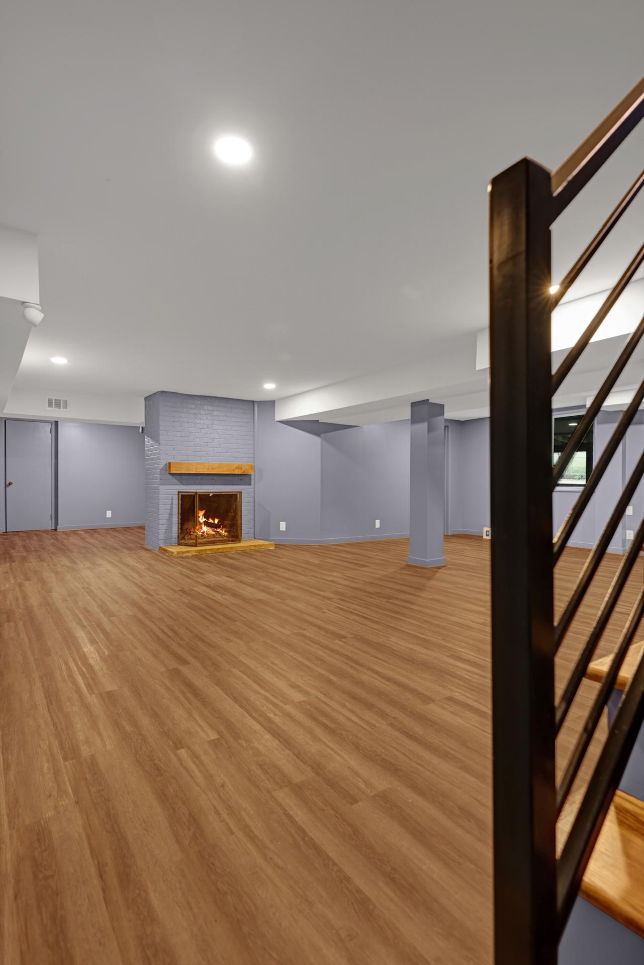 In the basement, our team tackled hidden leaks by installing a BDry system and sump pump, Kevlar straps for structural support, and LVP flooring for durability. Every space was renewed with craftsmanship and care.