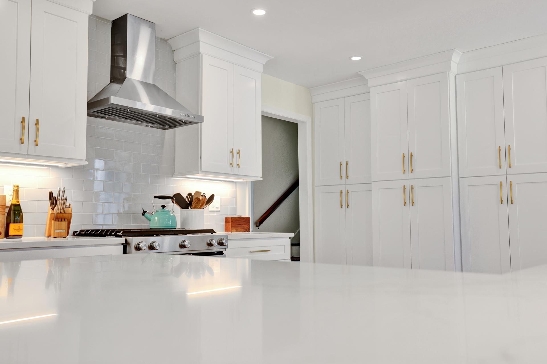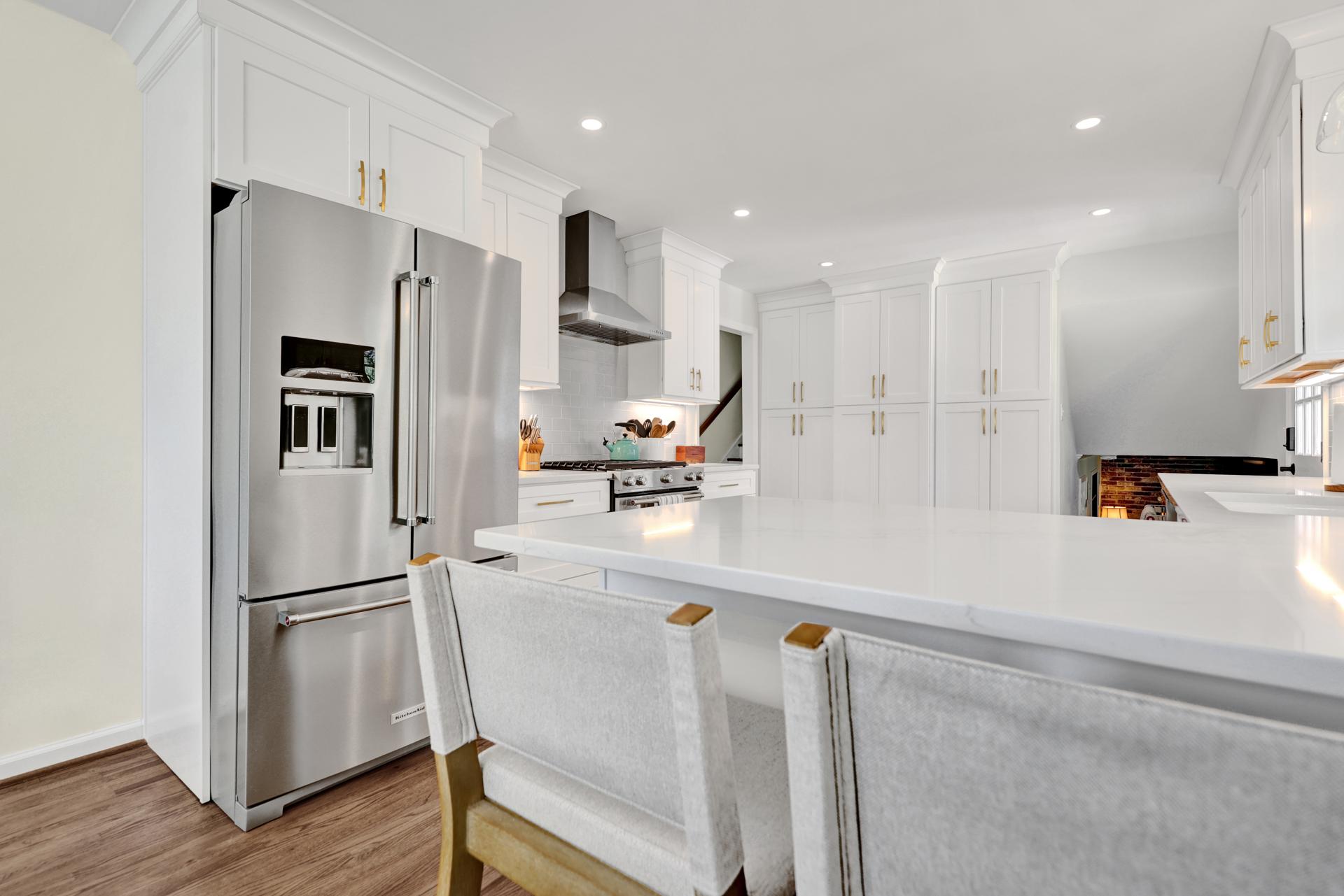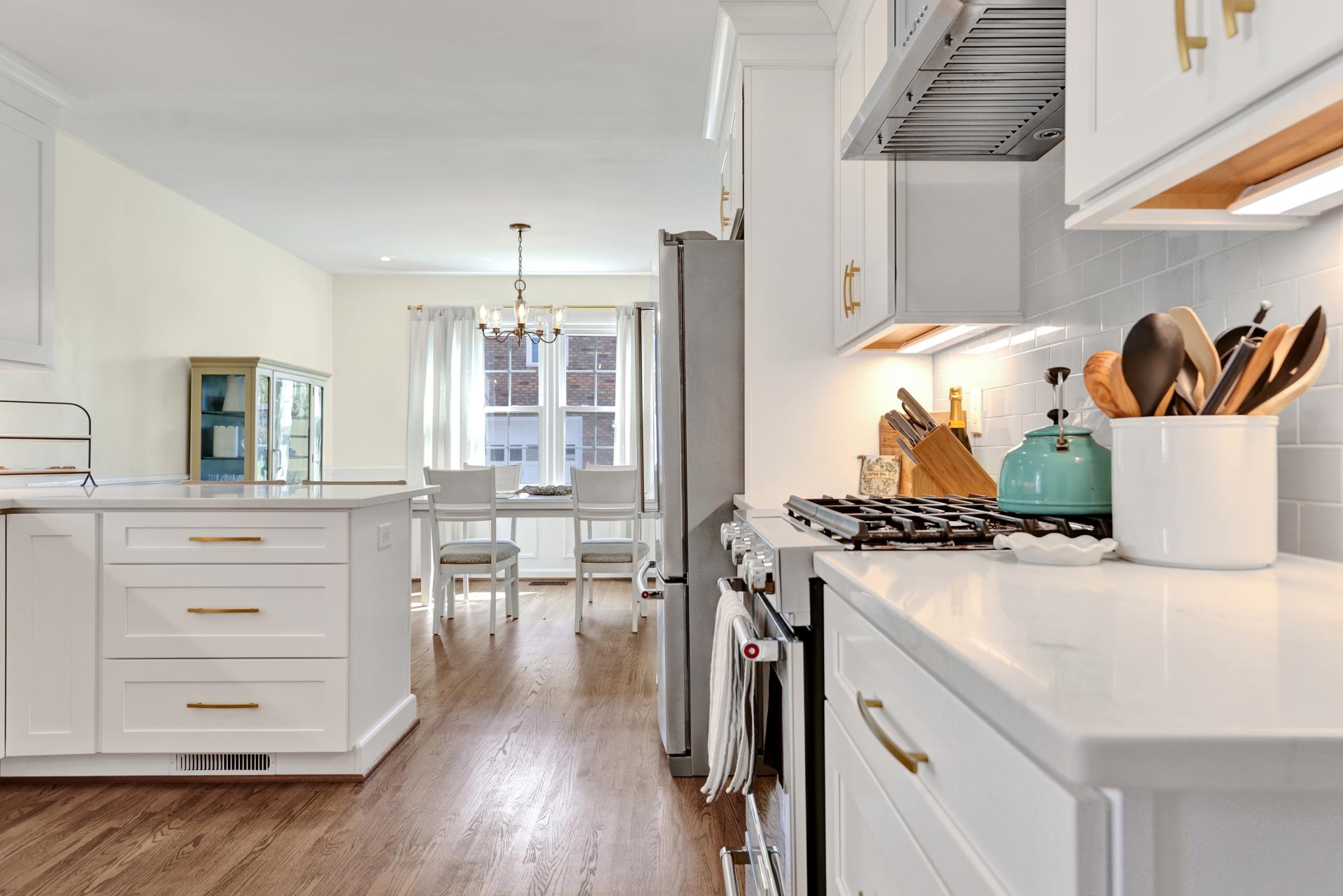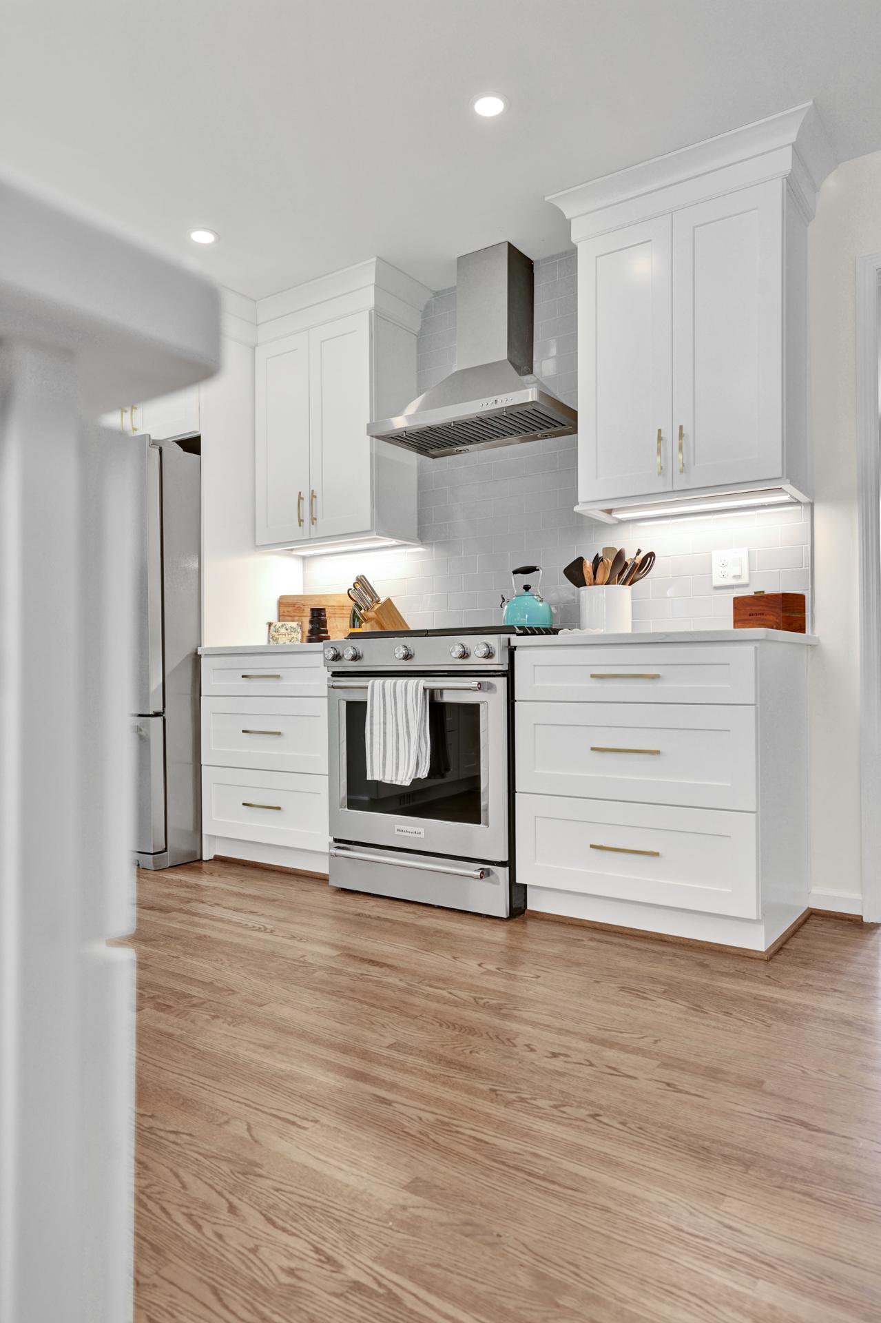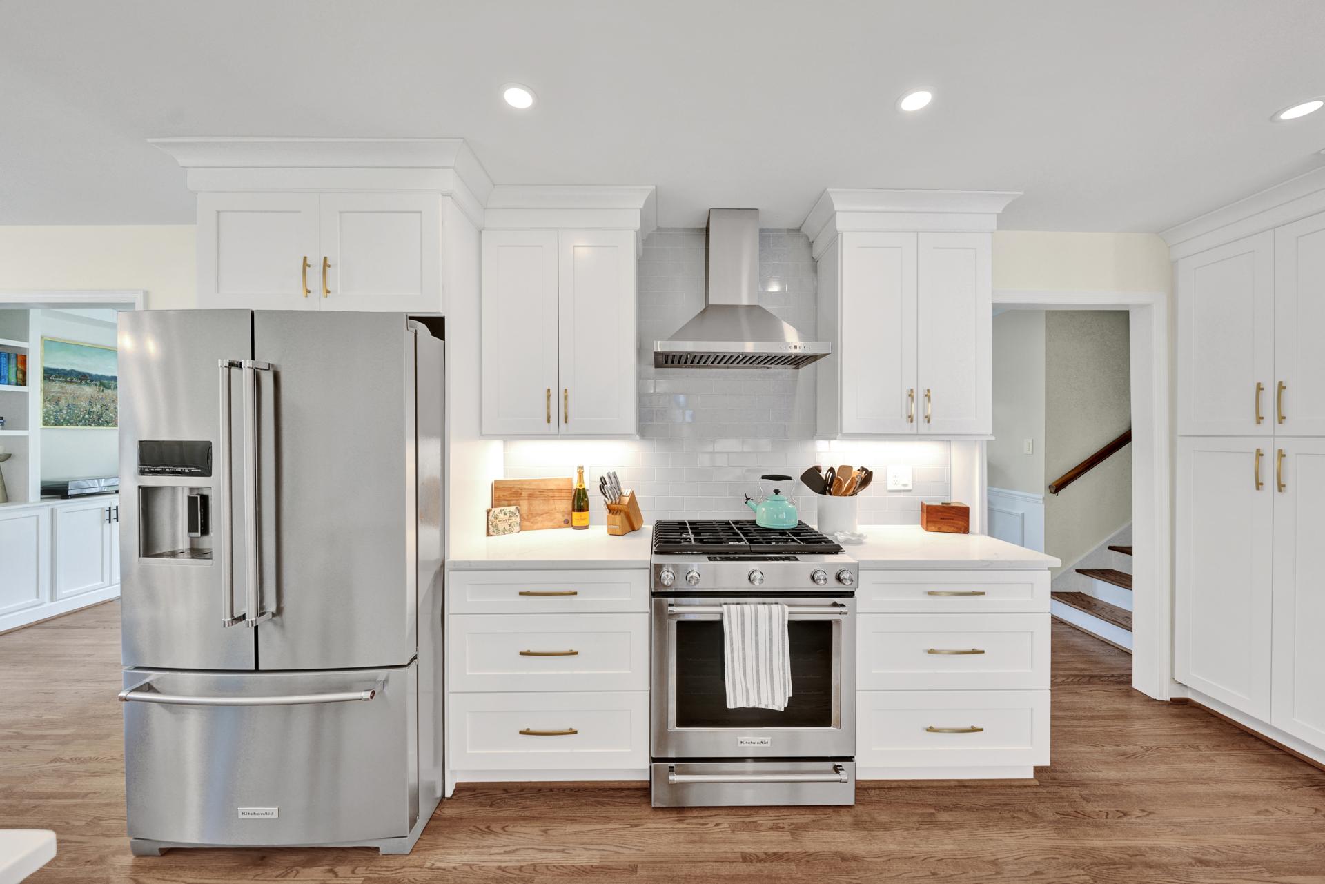 Our team reimagined the layout by opening the wall between the kitchen and dining room, creating an airy, connected main living area. We also converted a front bedroom into a stunning master bathroom and custom closet, giving the homeowners a private retreat within their home.